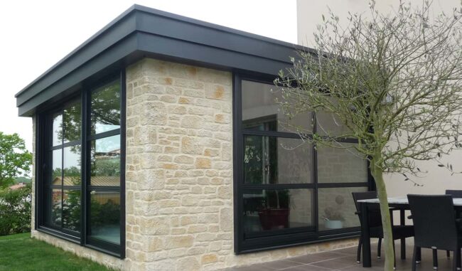 Véranda avec stores Noir